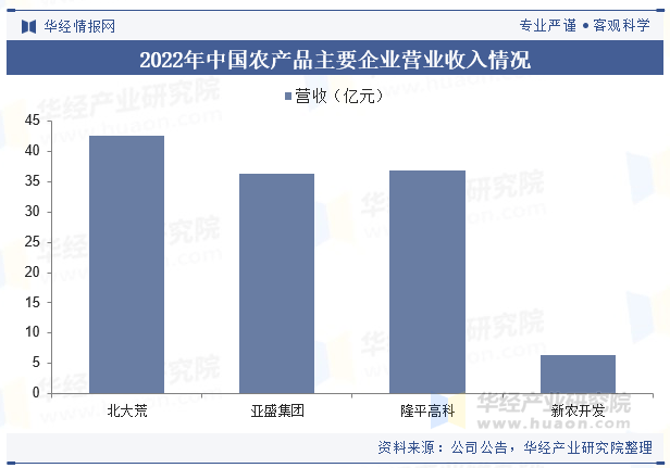 本文节选自华经财产研究院发布的《2023年中国农产操行业相关政策、分产物出口及将来成长趋向「图」》,如需获取全文内容,可进入华经谍报网搜刮查看。2022年,北大荒实现停业收入42。62亿元,同比增加17。42%;亚盛集团实现营收36。39亿元,同比增加9。19%;隆平高科实现停业收入36。89亿元,同比增加5。29%;新农开辟实现停业收入6。47亿元,同比削减5。53%。