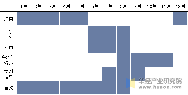 我国芒果目前已实现了鲜果周年供应。海南芒果次要正在1-5月和12月上市,广西、广东、云南芒果次要正在6-8月上市,四川芒果正在8-11月上市,贵州、福建芒果次要正在7-9月,芒果次要正在1-8月上市。