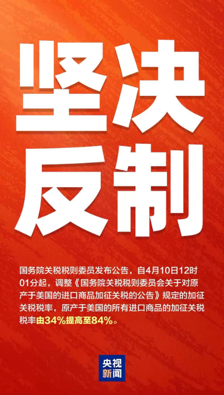 反制!对美加征84%关税起头施行!