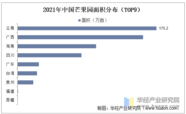 中国芒果产区次要分布正在云南、广西、海南、四川、广东、、贵州等地,此中,广西、海南以及四川产区的芒果园面积较着跨越其他产区。2021年云南、广西、海南以及四川产区芒果园面积别离为175。2万亩、158。4万亩、99。3万亩、80。7万亩,正在全国芒果园面积中所占的比沉顺次为29。87%、27。01%、16。93%、13。76%。